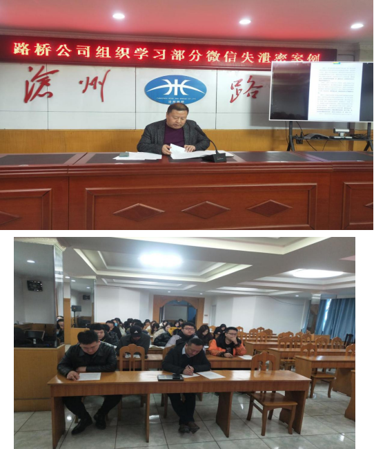 2月23日上午,滄州路橋工程有限責任公司為貫徹落實市委保密委員會辦公室、市shi國guo家jia保bao密mi局ju關guan於yu加jia強qiang涉she密mi文wen件jian保bao密mi管guan理li,學xue習xi部bu分fen微wei信xin失shi泄xie密mi案an例li情qing況kuang的de相xiang關guan通tong知zhi,健jian全quan完wan善shan公gong司si保bao密mi工gong作zuo製zhi度du和he個ge人ren保bao密mi承cheng諾nuo製zhi度du,加jia強qiang並bing規gui範fan公gong司si涉she密mi文wen件jian保bao密mi管guan理li,組zu織zhi全quan體ti員yuan工gong進jin行xing微wei信xin失shi泄xie密mi案an例li的de相xiang關guan學xue習xi。