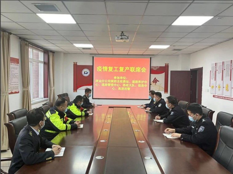 3月23日下午,津汕分公司黃驊北收費站、道路養護中心、監控稽查稽核中心與道路管理分公司津汕大隊、高速巡警黃驊大隊聯合召開複工複產聯席會議,共同研究分析疫情期間高速公路通行情況,全力保障複工複產順利進行。