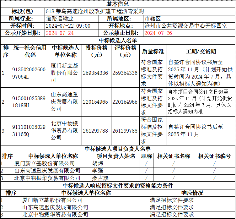 G18榮烏高速滄州段改擴建工程瀝青采購