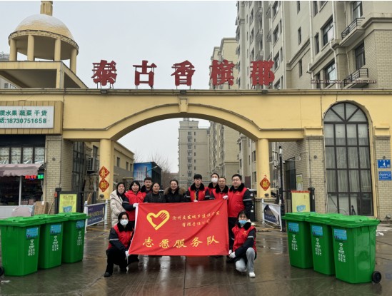 城鄉公司領導了解情況後高度重視,第一時間為泰古香檳郡小區社區購置了六個生活大垃圾桶,並於1月17日,組織幹部職工誌願者10餘人走進泰古香檳郡小區,開展“訪民情 辦實事 求實效”誌願服務活動。