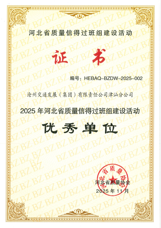雙項榮譽,既是過往答卷的肯定,更是邁向卓越的動力。津汕分公司將以此為新起點,深化全麵質量管理,推動QC創(chuang)新(xin)與(yu)班(ban)組(zu)建(jian)設(she)雙(shuang)輪(lun)驅(qu)動(dong),以(yi)數(shu)智(zhi)賦(fu)能(neng)探(tan)索(suo)養(yang)護(hu)運(yun)營(ying)新(xin)模(mo)式(shi),全(quan)麵(mian)提(ti)升(sheng)路(lu)網(wang)保(bao)障(zhang)能(neng)級(ji),為(wei)交(jiao)發(fa)集(ji)團(tuan)戰(zhan)略(lve)落(luo)地(di)聚(ju)勢(shi),為(wei)滄(cang)州(zhou)市(shi)域(yu)路(lu)網(wang)強(qiang)基(ji)固(gu)本(ben)。