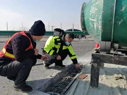 按照管理處要求,養護工區立即對K620和K684處橋梁伸縮縫進行應急維修。在疫情防控的關鍵時期,養護工區采用超早強低溫混凝土嚴格把控質量,能夠在最短的時間內修複此病害、降jiang低di對dui行xing車che安an全quan的de影ying響xiang。施shi工gong現xian場chang各ge類lei安an全quan設she施shi齊qi全quan,養yang護hu工gong區qu負fu責ze人ren全quan程cheng盯ding緊jin施shi工gong進jin度du,保bao證zheng施shi工gong時shi效xiao性xing,加jia快kuai施shi工gong進jin度du,確que保bao橋qiao梁liang安an全quan和he車che輛liang行xing駛shi安an全quan通tong暢chang。