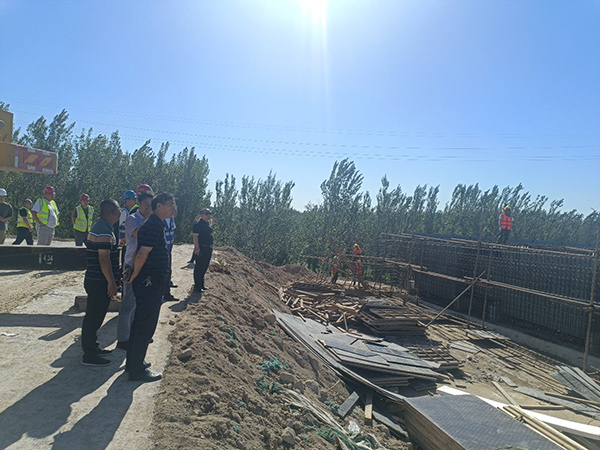 8月22日,市交通局監督處趙春濤主任、公路事業發展中心蘇西鎮科長對石黃南互通橋梁路基工程質量進行專項檢查。城鄉公司項目相關人員陪同檢查。