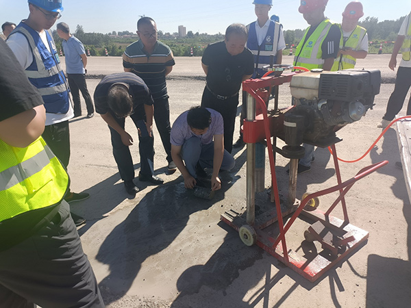 隨後行至跨線橋與高速匝道連接路,為檢測出水穩層的厚度、抗壓強度、完整性、mishixingdengshujuzhibiao,xianchangcaiyongzuanxinjizuanqulexinyang,tongguozhakanxinyangjiegoushifouwanzheng,jiancexinyanghoudushifoudabiao,bingjilushuju,panduanshifoudadaoshejiyaoqiu。jingshice,houduheyashidujibenfuheshejiyaoqiu。