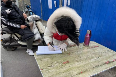 照片中正在為居民進行登記的誌願者是滄州開發區站職工裴雲。9日ri被bei封feng控kong在zai市shi區qu後hou,一yi想xiang到dao奮fen戰zhan在zai一yi線xian的de醫yi護hu人ren員yuan和he被bei困kun在zai各ge個ge崗gang位wei的de人ren們men有you家jia難nan回hui,她ta心xin中zhong十shi分fen焦jiao灼zhuo惦dian念nian,強qiang烈lie的de責ze任ren感gan驅qu使shi她ta第di一yi時shi間jian報bao名ming了le新xin華hua區qu小xiao樹shu林lin社she區qu的de誌zhi願yuan服fu務wu崗gang位wei。盡jin管guan被bei凍dong得de瑟se瑟se發fa抖dou,但dan是shi寒han風feng中zhong的de她ta仍reng然ran盡jin職zhi盡jin責ze、一絲不苟,為進出路口的每一個人員進行體溫測量和登記。