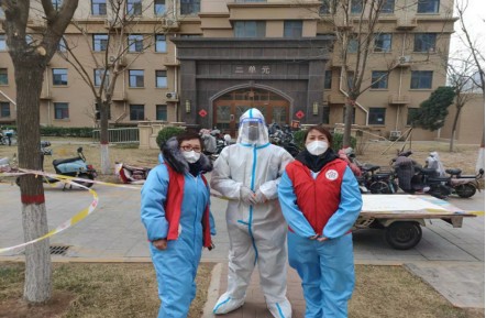 右(you)三(san)身(shen)穿(chuan)紅(hong)馬(ma)甲(jia)的(de)誌(zhi)願(yuan)者(zhe)為(wei)滄(cang)州(zhou)開(kai)發(fa)區(qu)站(zhan)職(zhi)工(gong)郭(guo)曉(xiao)晴(qing)。寒(han)風(feng)中(zhong)的(de)她(ta),已(yi)連(lian)續(xu)五(wu)天(tian)在(zai)運(yun)河(he)區(qu)鳳(feng)凰(huang)城(cheng)小(xiao)區(qu)誌(zhi)願(yuan)執(zhi)勤(qin),為(wei)封(feng)控(kong)樓(lou)內(nei)的(de)居(ju)民(min)進(jin)行(xing)物(wu)資(zi)發(fa)放(fang)和(he)配(pei)送(song)。雖(sui)然(ran)已(yi)被(bei)凍(dong)得(de)瑟(se)瑟(se)發(fa)抖(dou),但(dan)她(ta)的(de)語(yu)氣(qi)依(yi)然(ran)堅(jian)定(ding):“我做誌願者不是為了出風頭,更不是為了宣傳,我就是想為大家真真正正做點事,就是為了讓滄州趕快好起來!”
