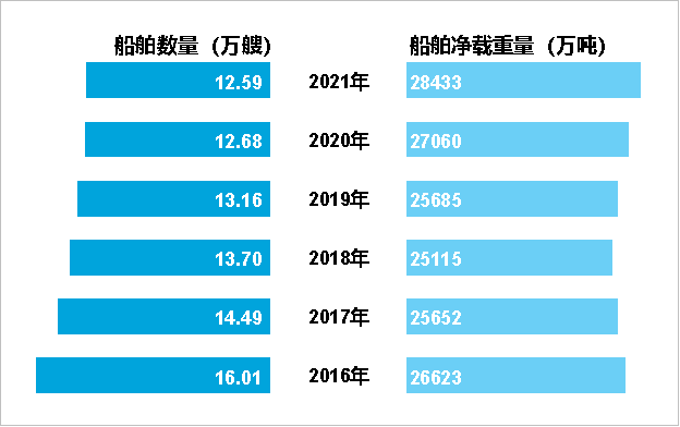 圖5 2016-2021年年末全國水上運輸船舶擁有量