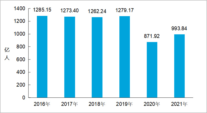 圖9 2016-2021年全國城市客運量