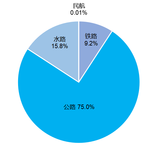 圖8 2021年營業性貨運量分運輸方式構成