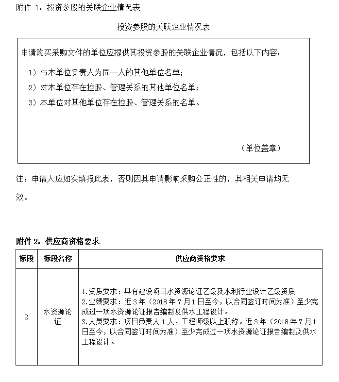 (一)項目概況及采購範圍:水資源論證報告的編製、上報、審查、審批,通過批複(核準),並bing提ti供gong勘kan察cha設she計ji期qi間jian技ji術shu谘zi詢xun等deng工gong作zuo。采cai購gou內nei容rong包bao括kuo水shui水shui資zi源yuan論lun證zheng及ji供gong水shui工gong程cheng設she計ji。如ru采cai用yong打da井jing方fang式shi取qu水shui,要yao求qiu取qu得de有you關guan行xing政zheng主zhu管guan部bu門men的de批pi準zhun文wen件jian,如ru采cai用yong其qi他ta方fang式shi取qu水shui則ze需xu編bian製zhi供gong水shui工gong程cheng初chu步bu設she計ji。