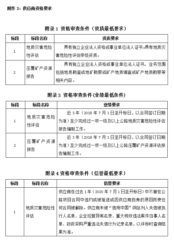 1標段:包括地質災害危險性評估報告的編製、上報、審查、審批,通過最終批複(核準),並提供勘察設計期間技術谘詢等工作。