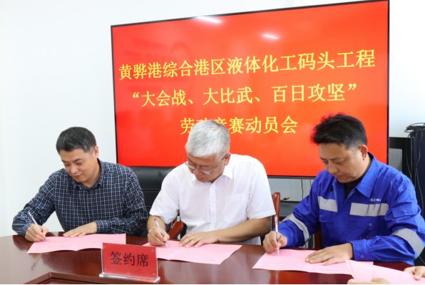 黃驊港綜合港區液體化工碼頭工程將以本次勞動競賽為契機,堅定信心、擔當作為、敢打必勝、勇爭一流,全力以赴抓安全、促生產、保質量、提速度,為圓滿完成“大會戰、大比武、百日攻堅”工作任務而不懈奮鬥。