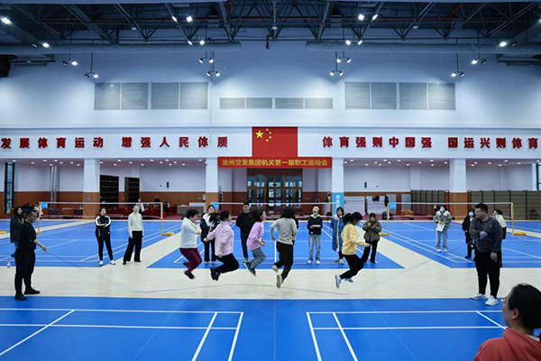 為活躍職工生活,培育企業文化,展現職工風采,1月16日下午,滄州交發集團機關工會在滄州市工人文化宮職工健身活動中心舉辦了以“團結拚搏 同心共贏”為主題的第一屆職工運動會。集團機關、資管公司100餘名幹部職工參與活動,集團黨委副書記、總經理楊正宇宣布運動會開幕。
