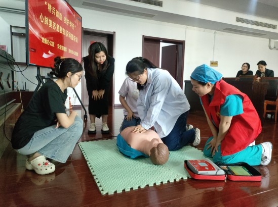 為方便更多的職工參與,培訓通過騰訊會議進行線上直播。 市人民醫院本部急診科副主任護師、護士長楊慧為大家詳細講解了心髒驟停識別、心肺複蘇操作要點、AED使用方法及常見急症處理,並通過實操演練,幫助職工快速掌握急救技能。義診活動中,心內科、腦係科、骨科、內分泌科的醫護人員為大家測量血糖血壓、心電圖篩查、腦卒中風險講解、關節疼痛評估,現場解答健康問題。